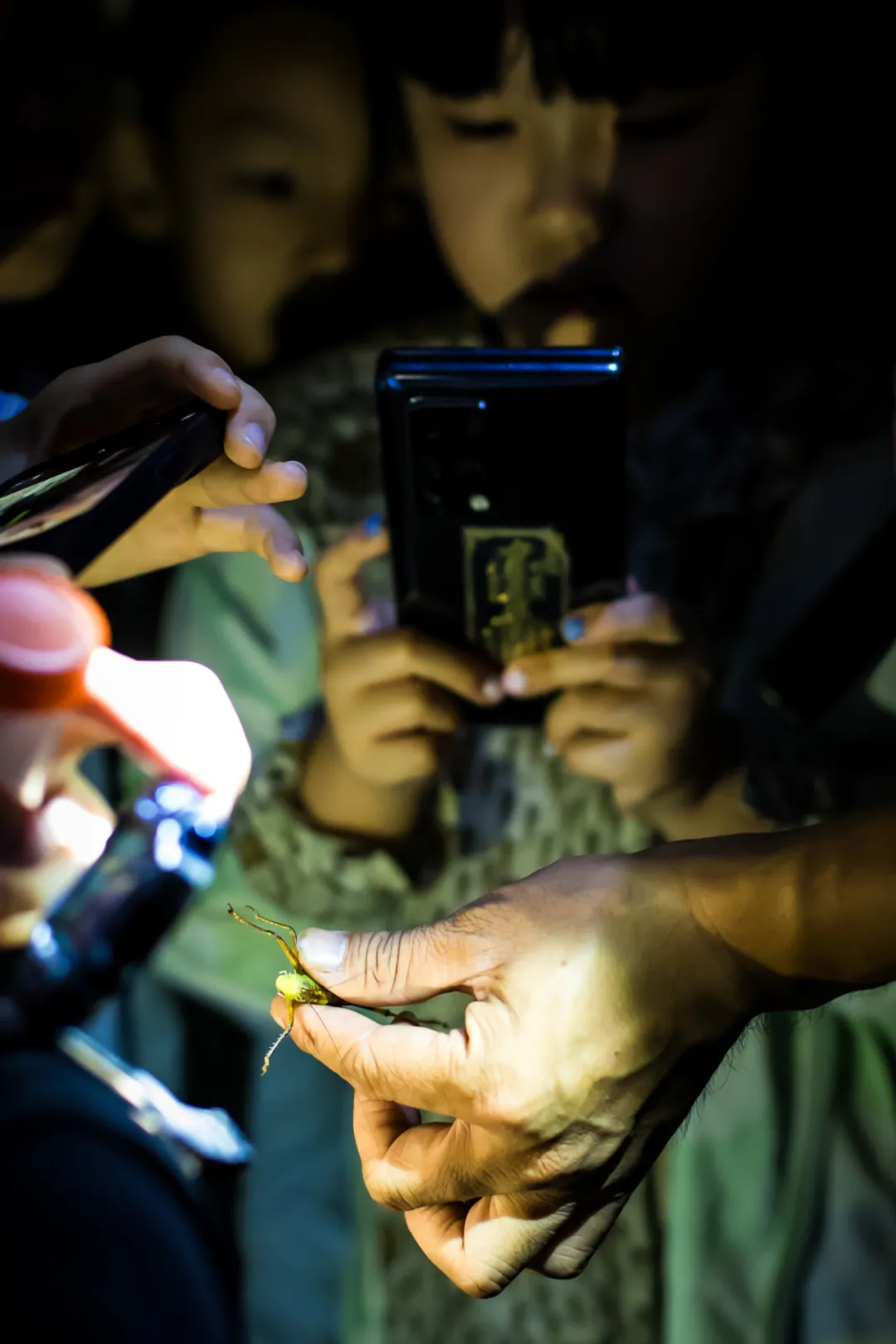 太阳落下是昆虫们外出活动的信号,翻开树叶与石块进行昆虫夜观,观察天牛、甲虫等昆虫的触角,这次科考之旅才算齐整。