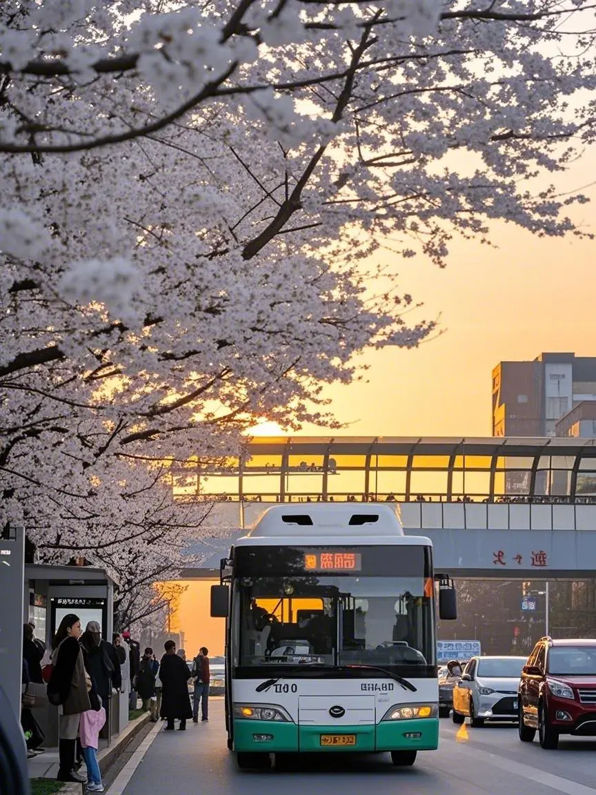 · 全国首个樱花主题公交站,透明花瓣顶棚自带滤镜