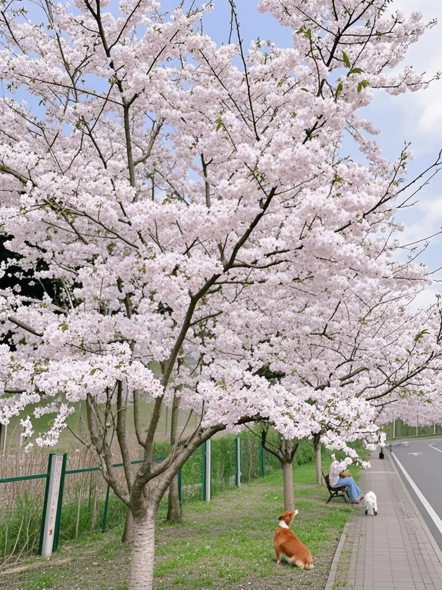 · 700米樱花栈道临湖而建,遛毛孩子非常合适