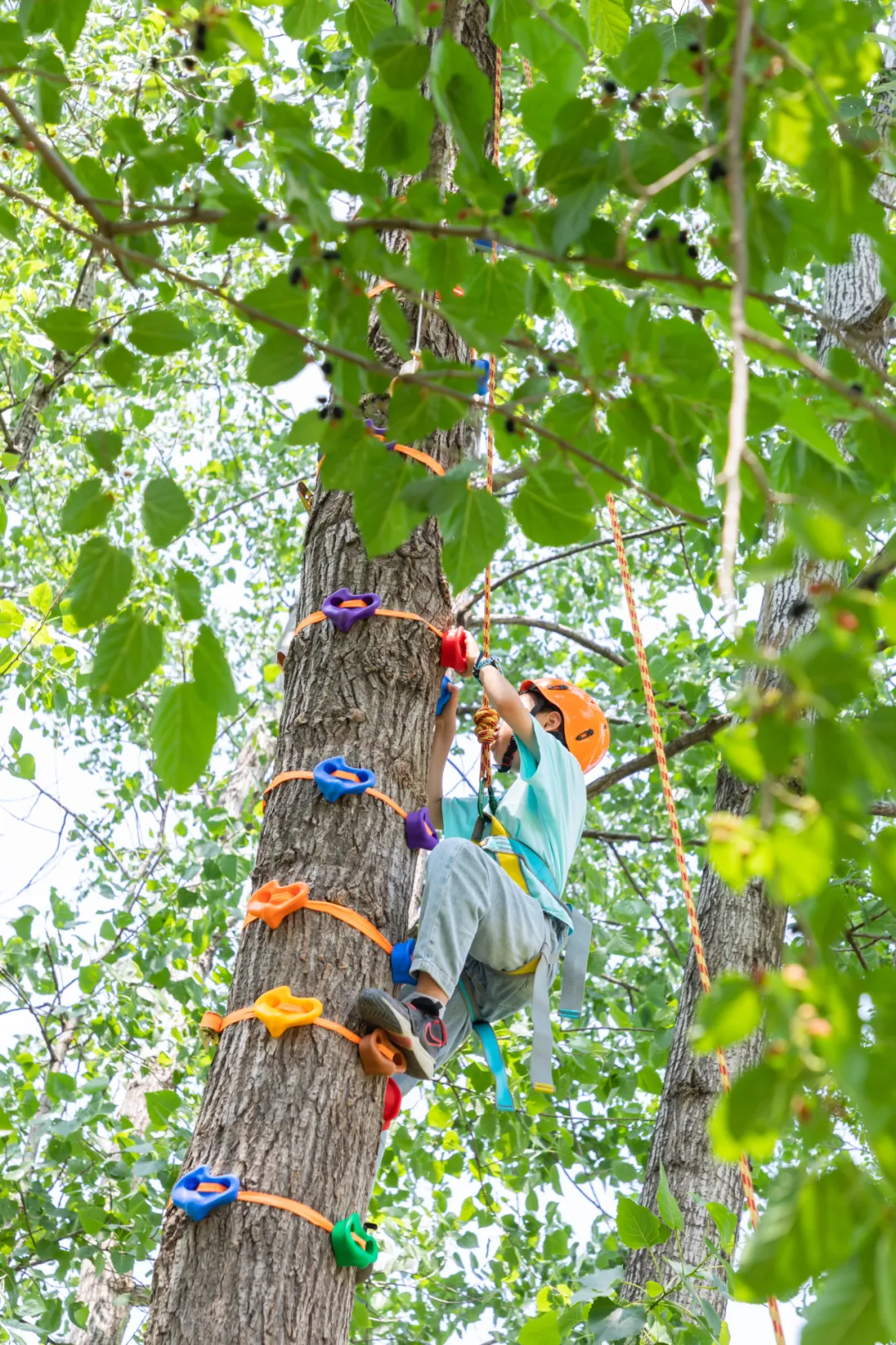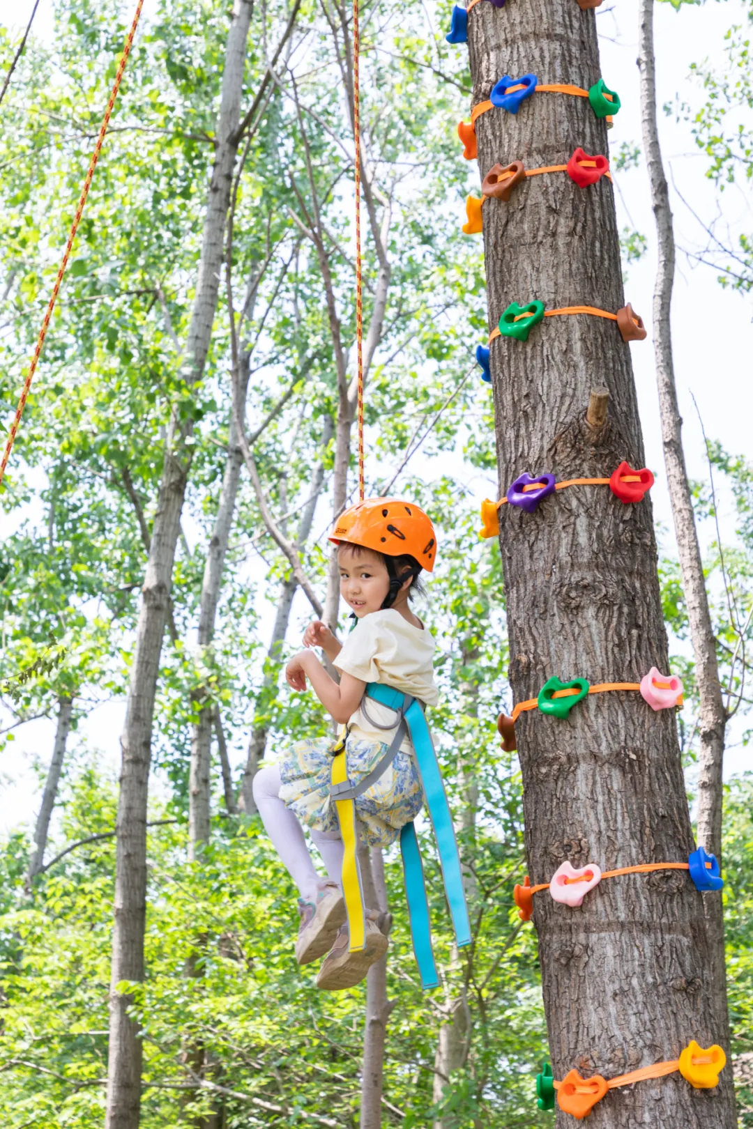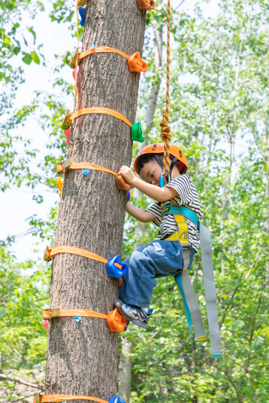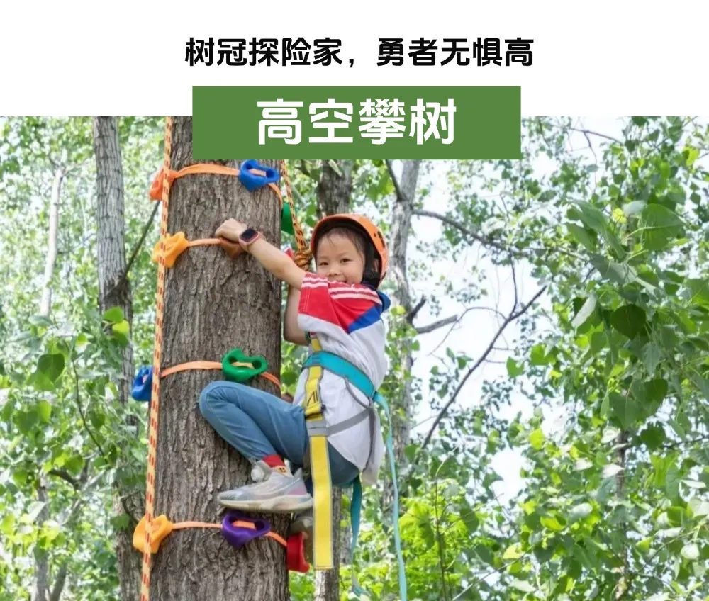 10米高空挑战,专业教练1对1守护,孩子在颤抖枝叶间学会深呼吸、专注突破,以及直面恐惧的勇气。