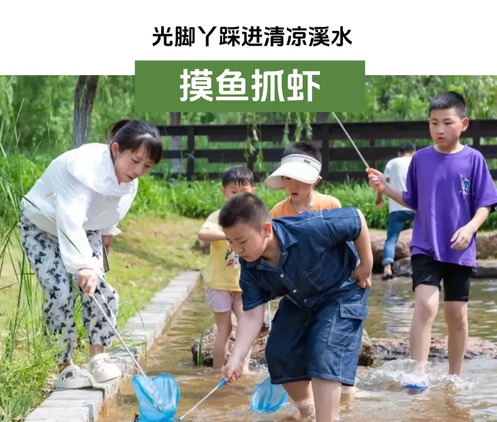 还有超绝的山野限定彩蛋!卷起裤腿、翻开石块,亲手捕捉鱼虾的滑溜惊喜。西瓜往溪里一丢秒变“天然冰箱”,这才是夏天该有的“冰镇快乐”!