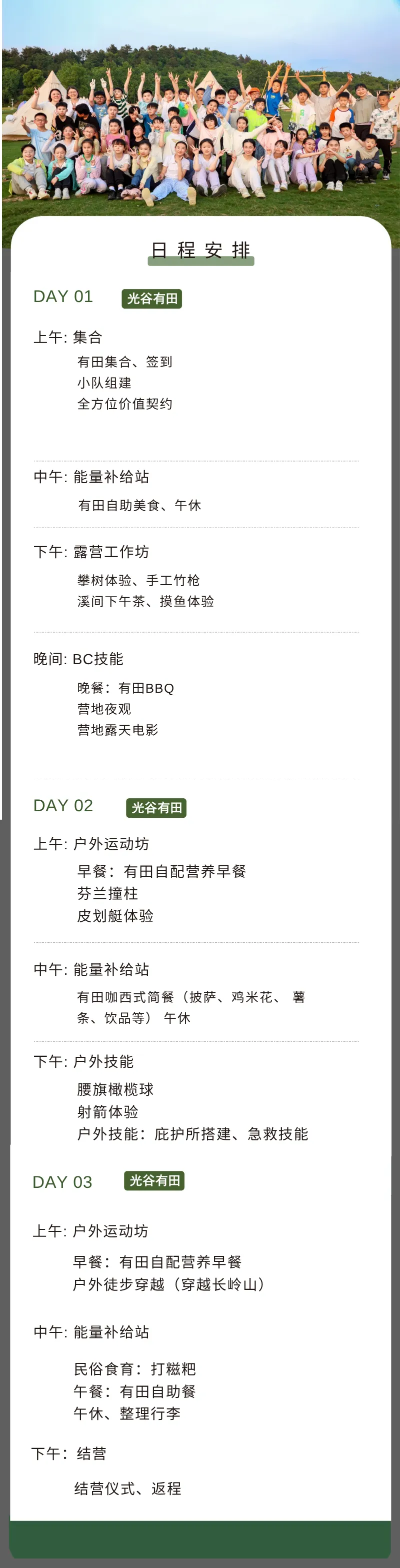 🎫 费用包含 | 参营儿童行程中的内容一价全含(餐、住、门票、教学物料、保险等)