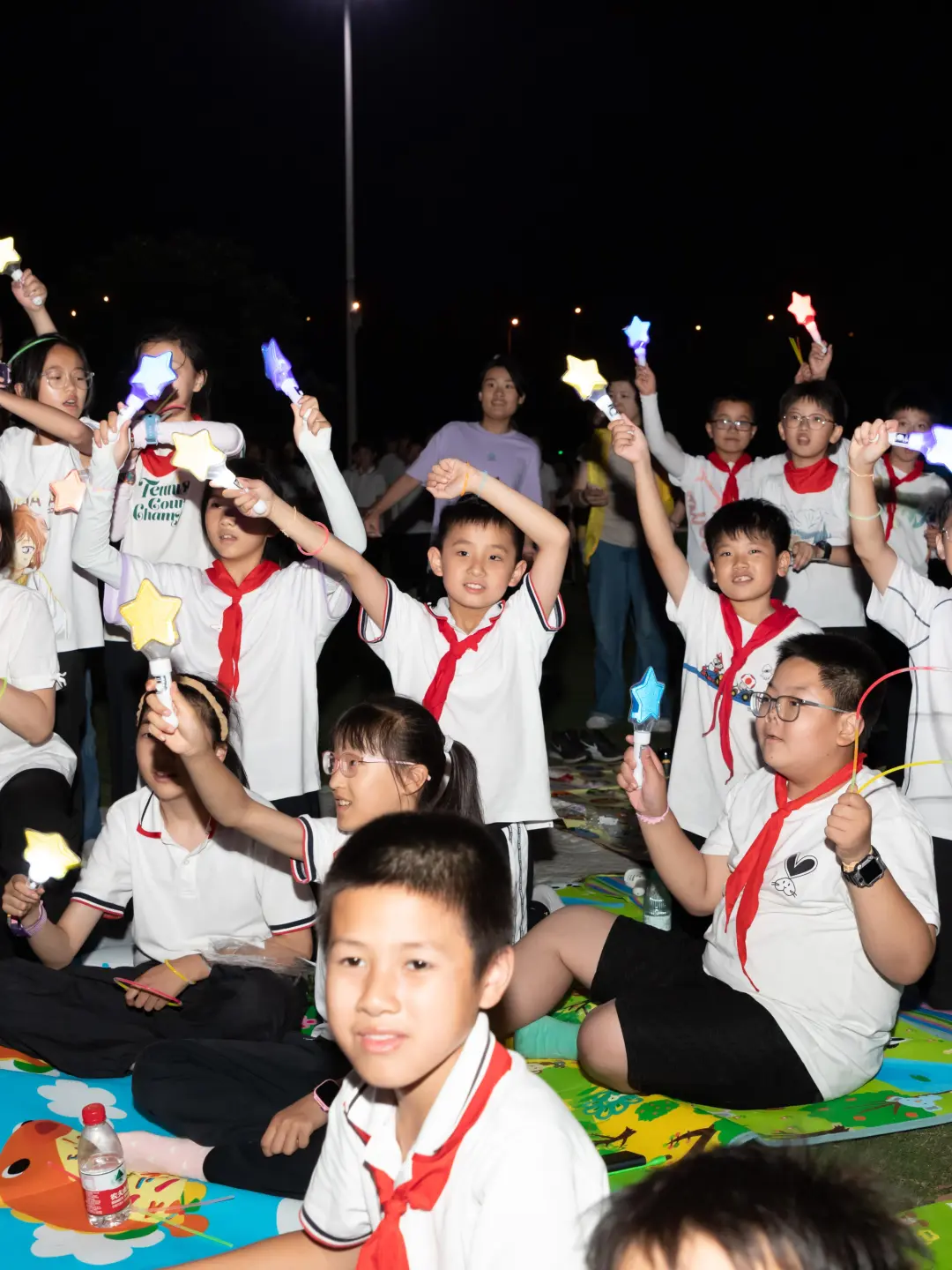 以天地为幕,星星为伴,孩子们沉浸在一场场精彩绝伦的动画电影中,感受不一样的观影体验。