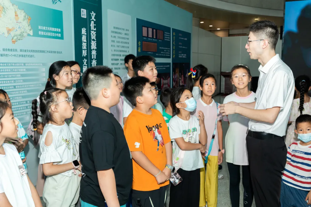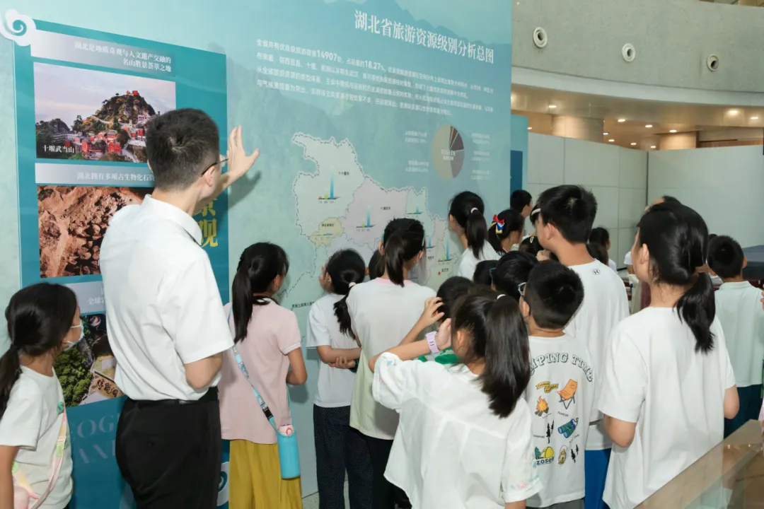 活动最后,刘老师带着孩子们走进「湖北省文化和旅游资源普查成果展」,孩子们踮着脚辨认展板上的地标,小声惊叹:“原来家乡藏着这么多宝贝!”。