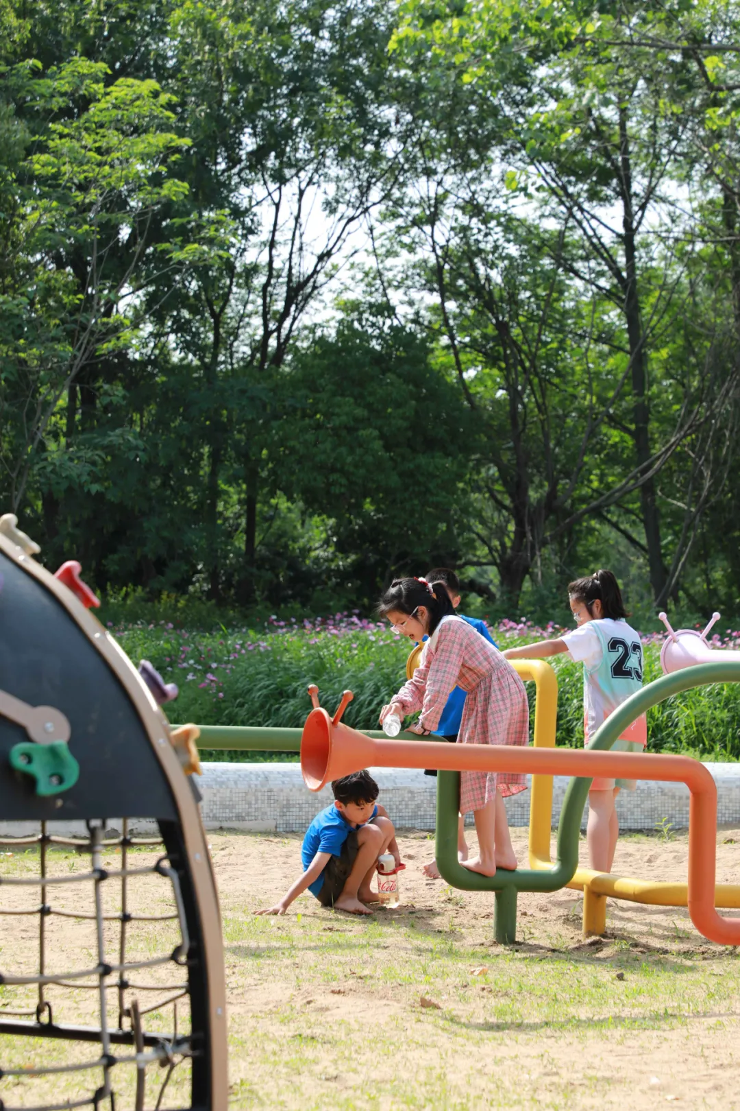 在沙池挖呀挖,小铲子小桶齐上阵,堆城堡、挖水渠,沙地就是娃的快乐星球!