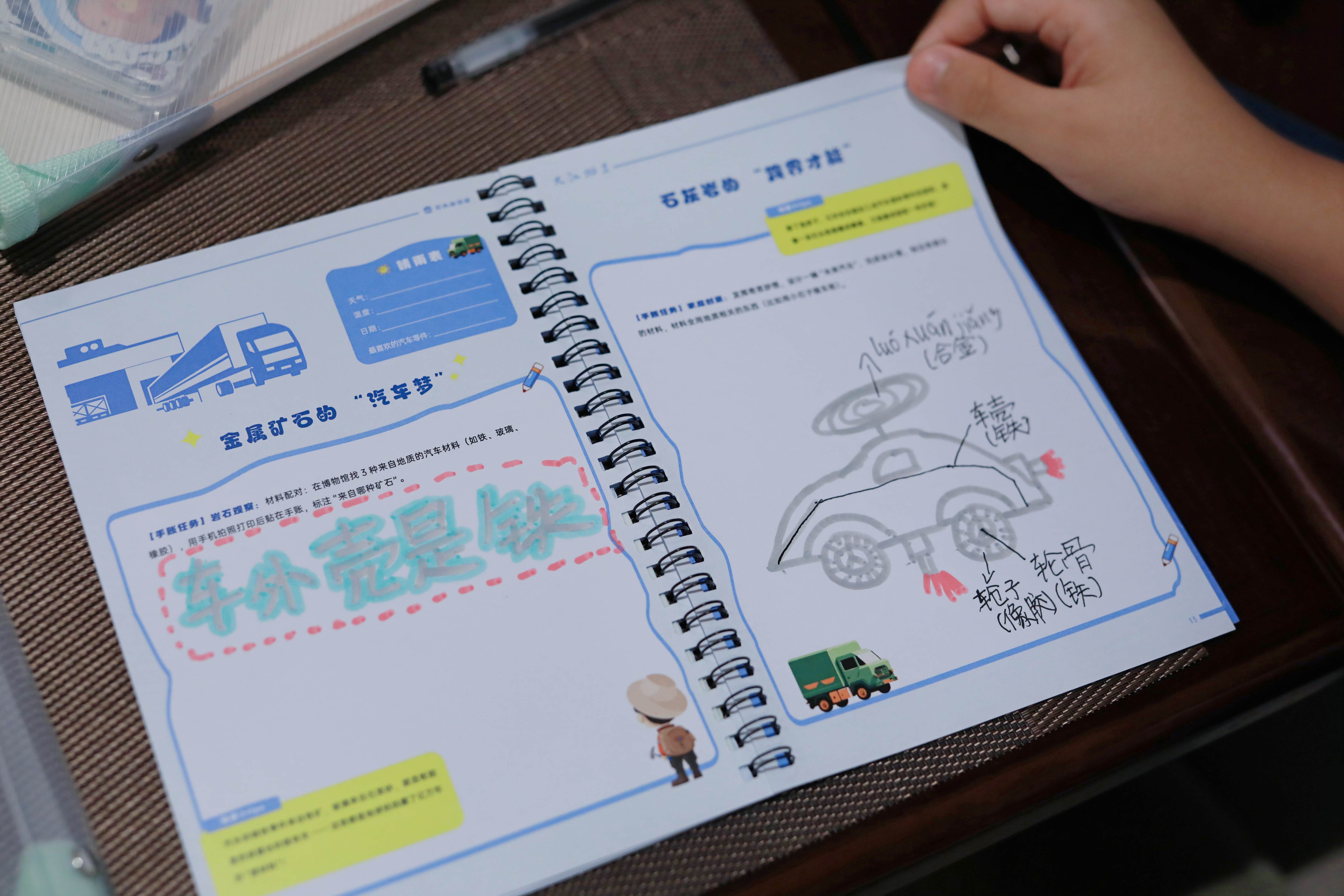临别前夕,孩子们与父母共同翻开自己创作的地质手帐,循着课程线索穿梭于十堰的山水之间。每一处地质景观的打卡照片,都被精心剪贴成手帐册页中的鲜活注脚。