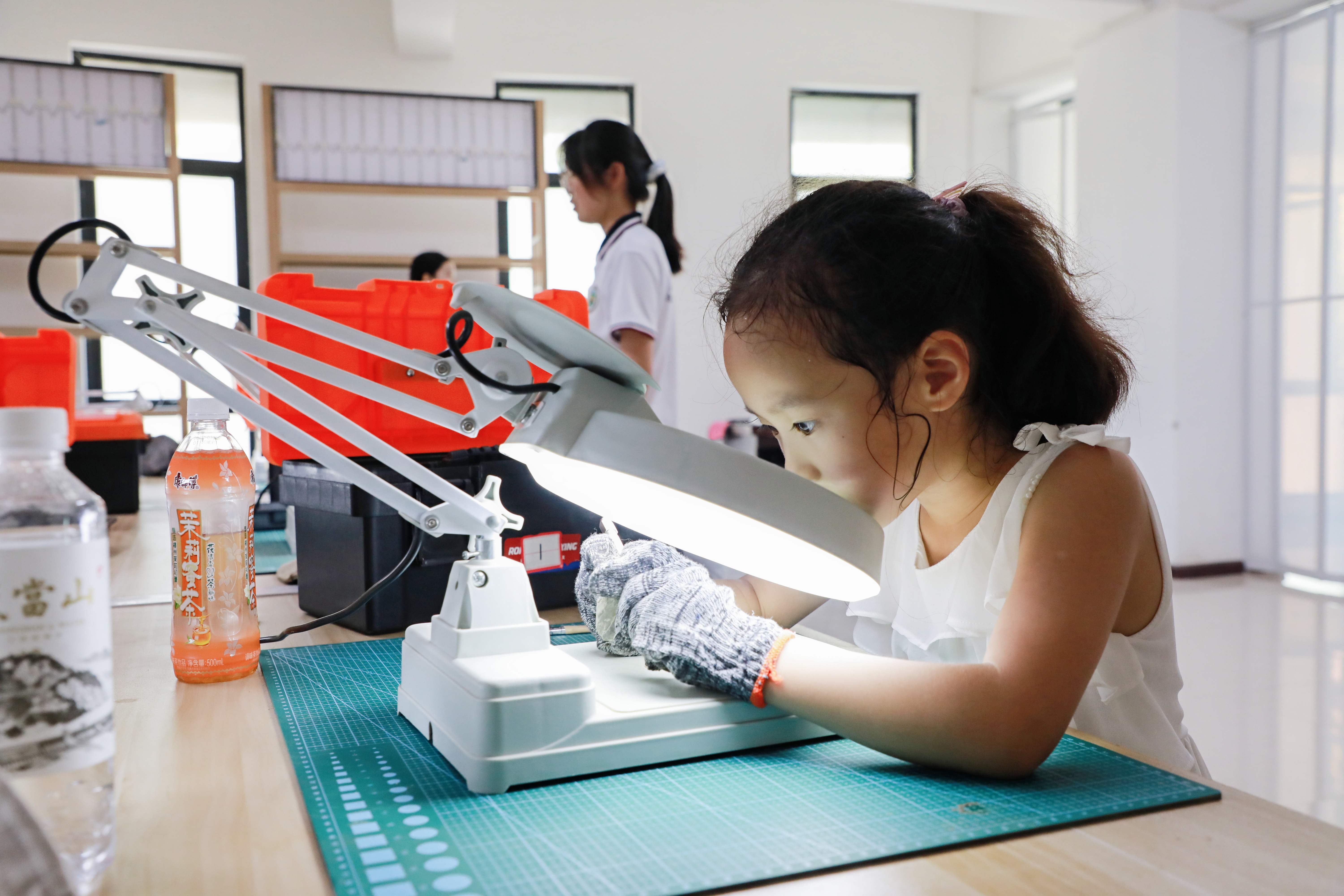 在「南水北调中线工程纪念园」中,孩子们手持放大镜和专业工具,开展花岗岩、玄武岩、石灰岩和砂岩的鉴别实验——从肉眼观察、硬度比对,到滴酸检测碳酸盐反应,一步步像真正的地质学家那样工作。