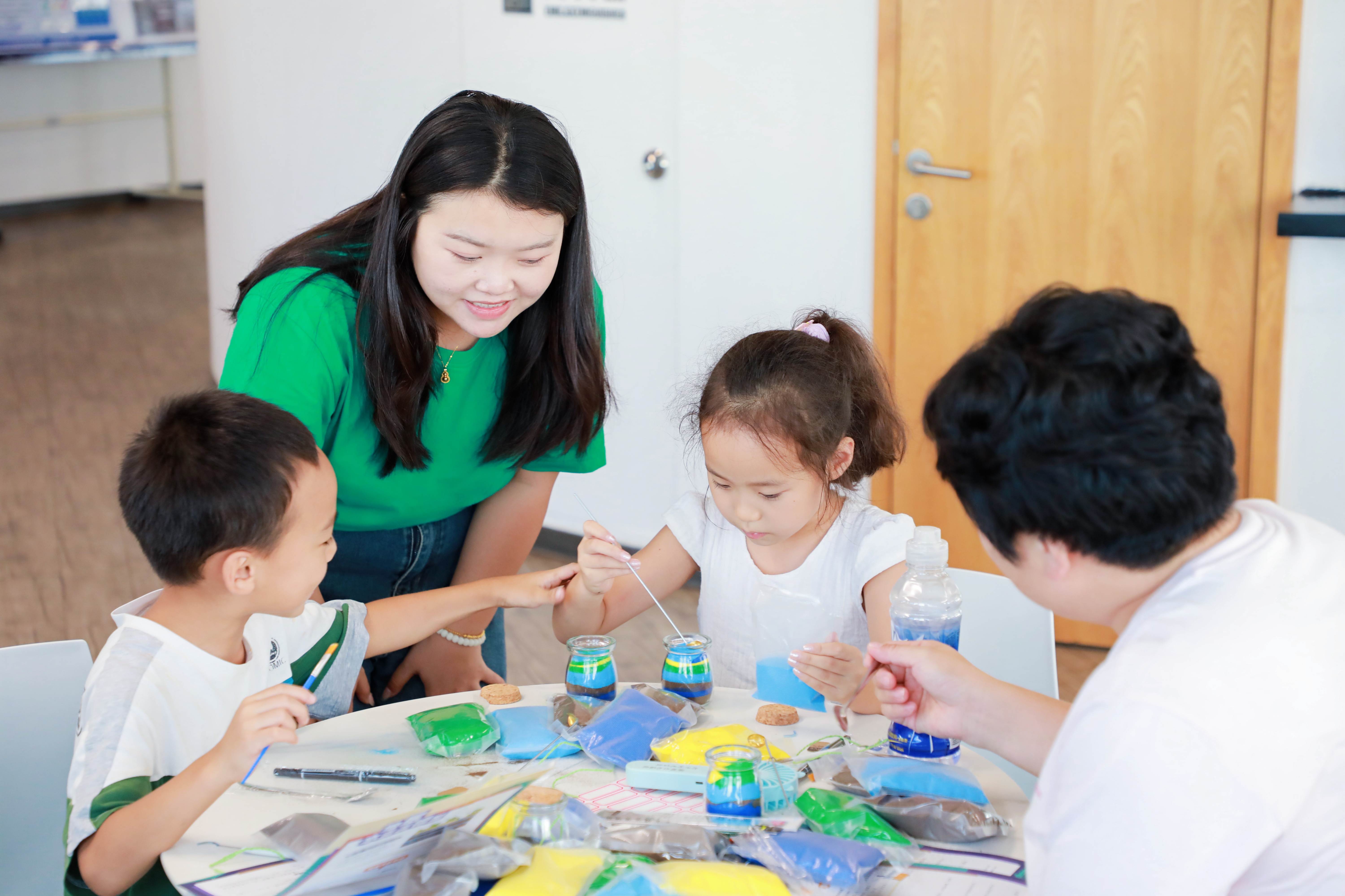 孩子们在这里观察现代化生产线如何将丹江口清水变成瓶装水,并亲手取水灌装、设计标签;和爸爸妈妈一起协作完成丹江口水库地质层模拟沙瓶。