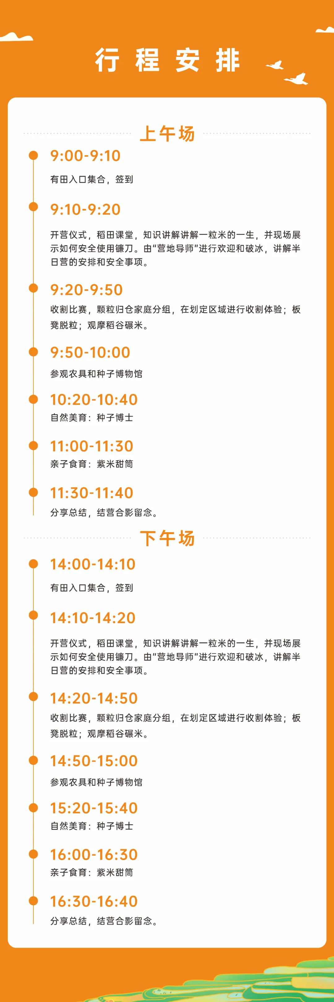 开营仪式上,在专业的营地导师讲解中,孩子们将学习“稻米的一生”,并现场展示如何安全使用镰刀。随后,就是我们最期待的环节——亲子收割比赛!
