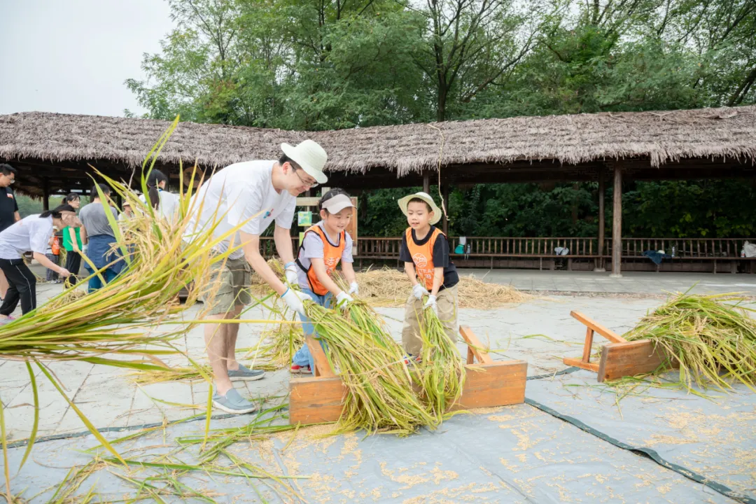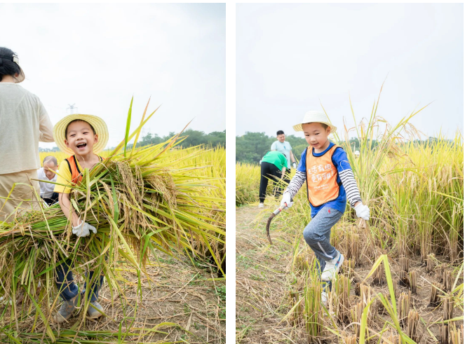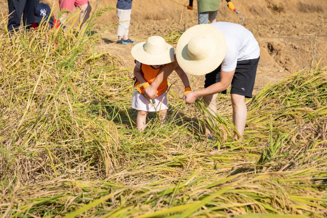 家庭组队,在指定的稻田区,弯下腰,亲手收割下今秋第一把沉甸甸的稻穗。听着稻谷被割断的“唰唰”声,闻着清新的稻草香,孩子们将在汗水中真切地体会到“粒粒皆辛苦”的含义。
