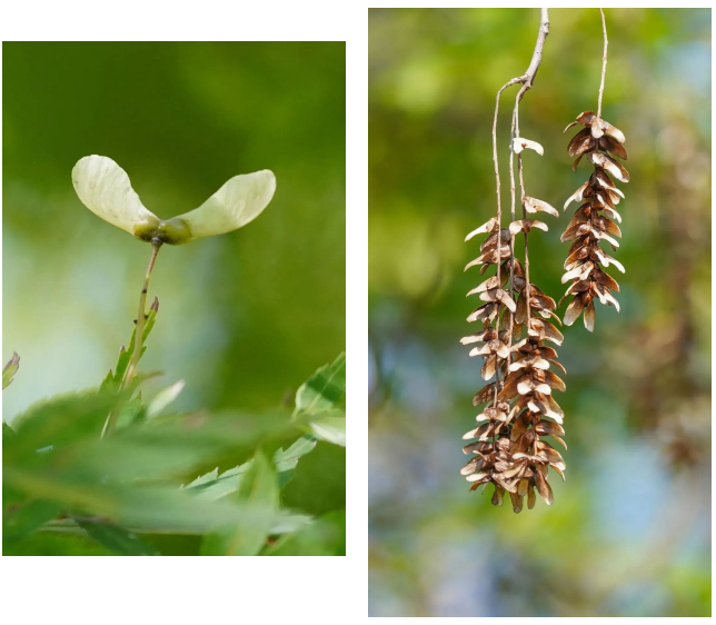 那个长着小翅膀的,是红枫和枫杨的果实,它们是天生的“小直升机”,轻轻一抛,在空中旋转跳跃,翩翩起舞。
