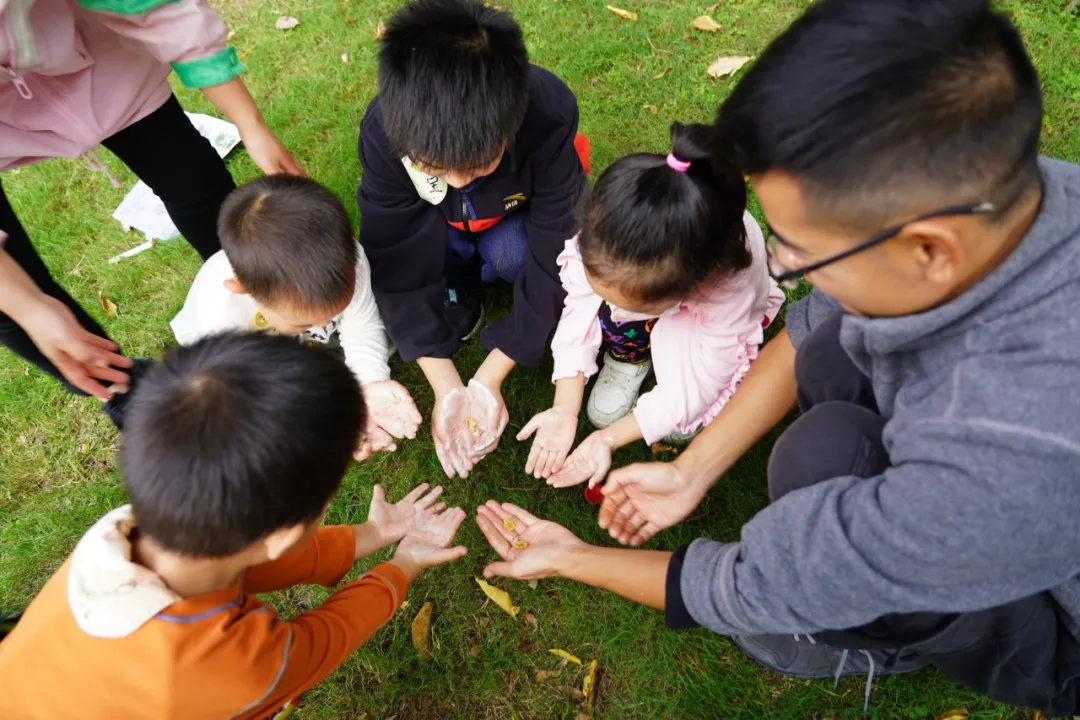 孩子们拿着放大镜蹲在地上研究果实纹理,追着老师问“为什么”,捧着自己收集的宝贝如数家珍……那个专注劲儿,连爸妈都被感染了!