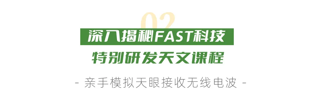 带领孩子们倾听天眼接收到的“脉冲星”神秘的声音,从八大行星到银河系专业讲座课程,扩展孩子对宇宙的认知和想象。