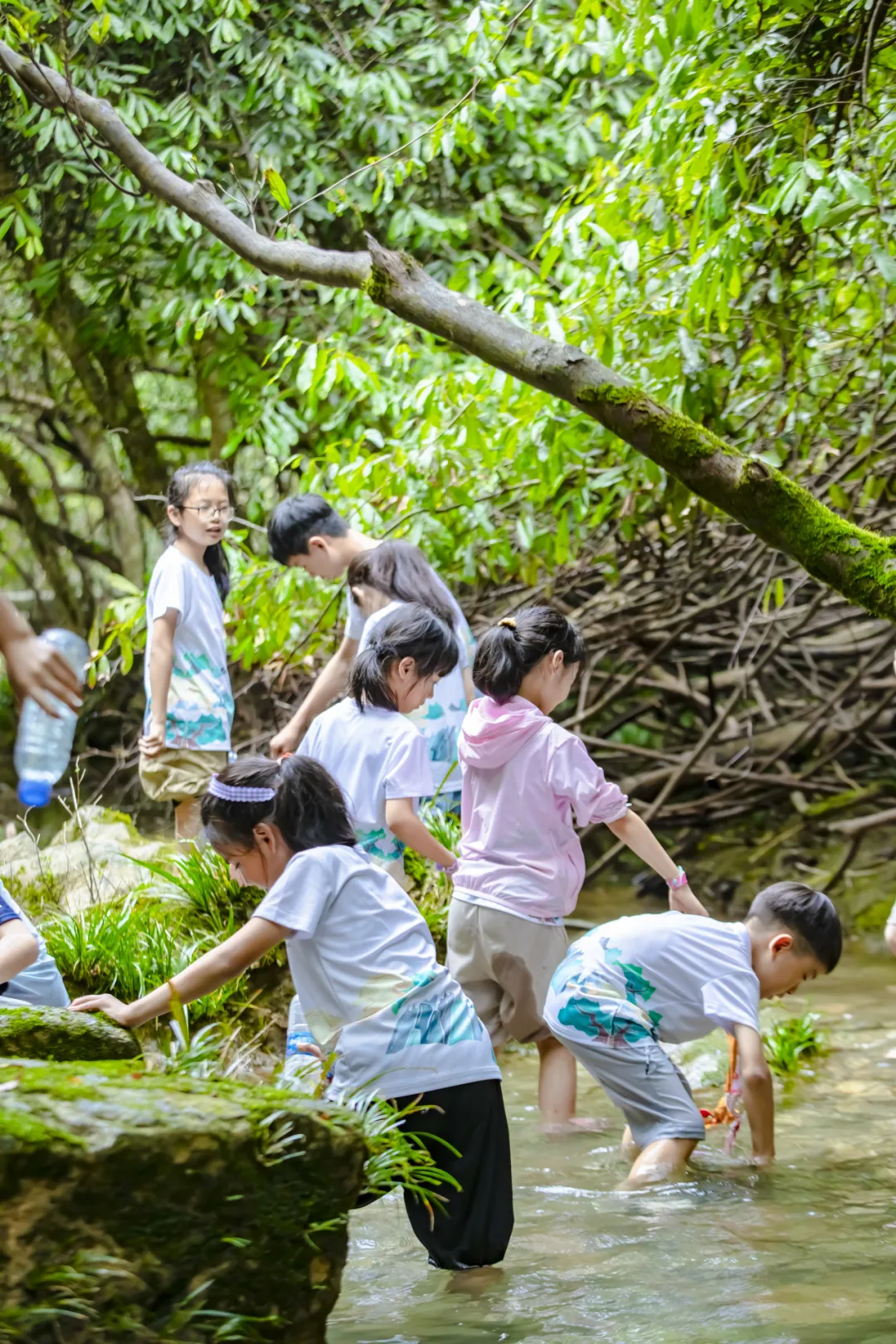 在林间溪流里戏水,感受绝对的田园生活,溅起的水花和欢笑声交织回响在山谷间,温馨的时光是给孩子最好的成长礼物。