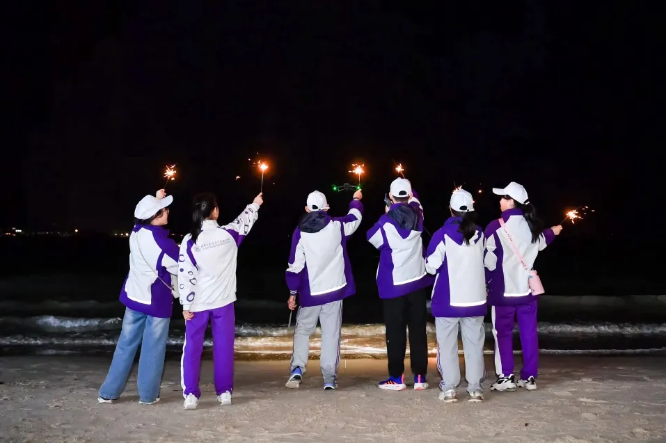 白天搞科研,晚上到海边放松。放烟火、光脚追海浪、和刚认识的小伙伴组队玩沙雕比赛。这一天孩子们既当了回“小科学家”,又交了一群疯玩到底的朋友。